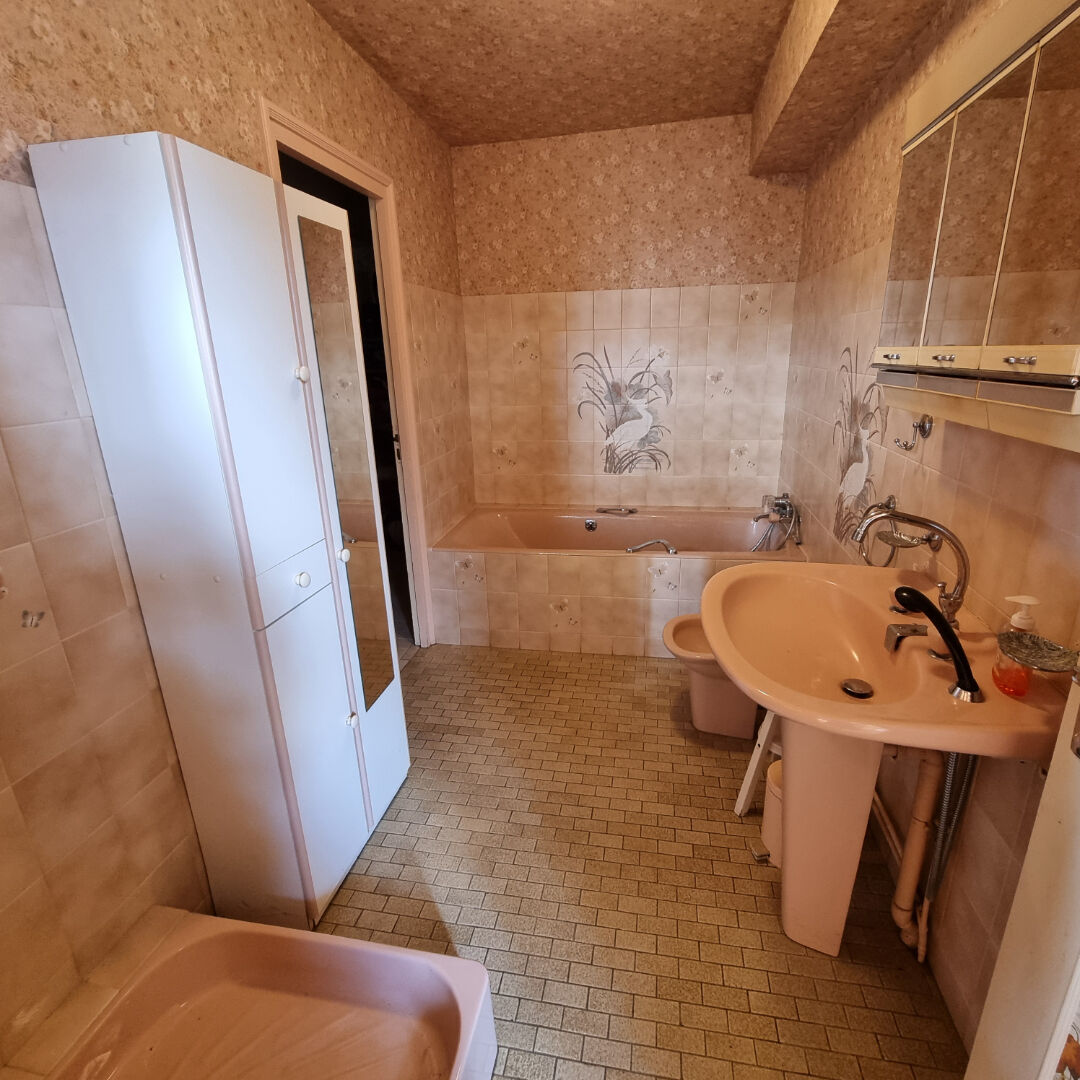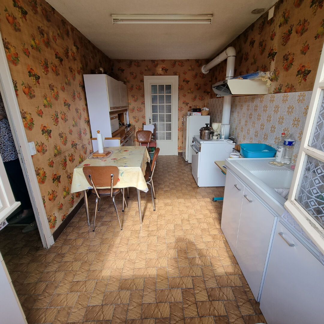 En vente dans votre agence GBimmobilier, maison composée : entrée, séjour, cuisine, 2 grandes chambres, salle de bains, cellier, WC. Grenier. Honoraire à charge vendeur.