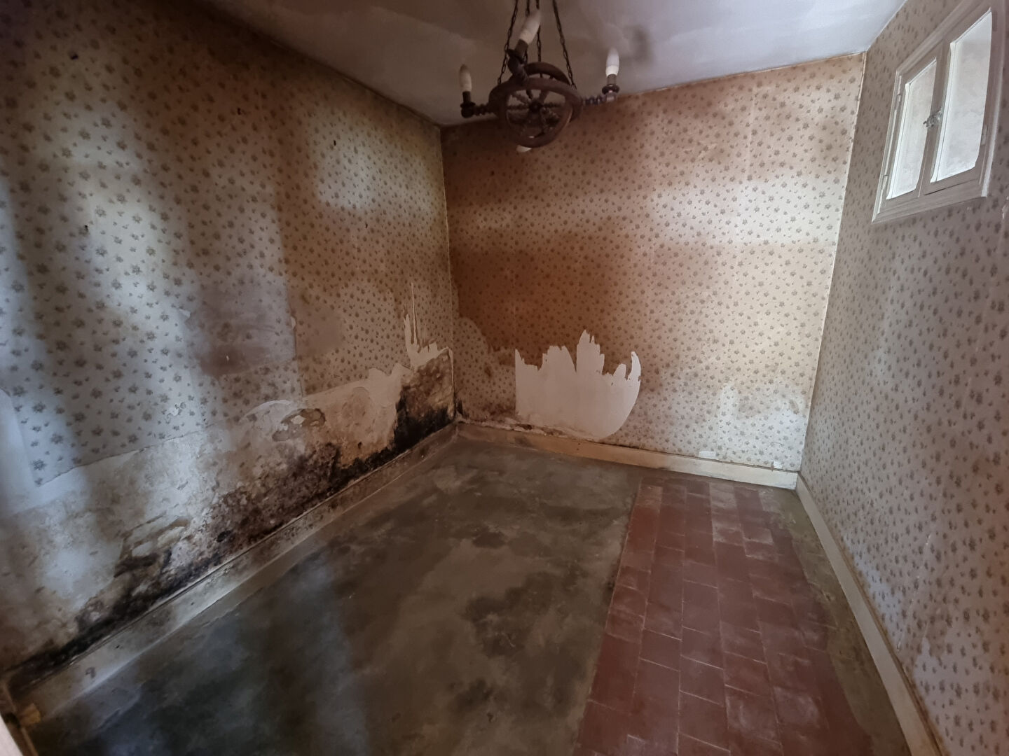 Maison de plain-pied à rénover, offrant un beau potentiel, comprenant un séjour lumineux, un salon, deux chambres, une salle d’eau et WC.