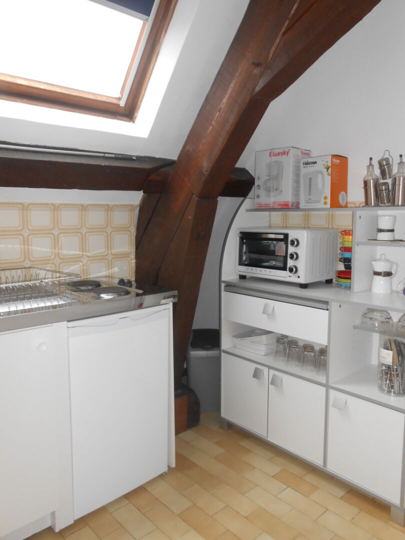 Rue Saint Martin, F1 meublé au 3e étage de la résidence avec ascenseur, comprenant pièce à vivre, cuisine équipée, salle d’eau avec wc et lave-linge.