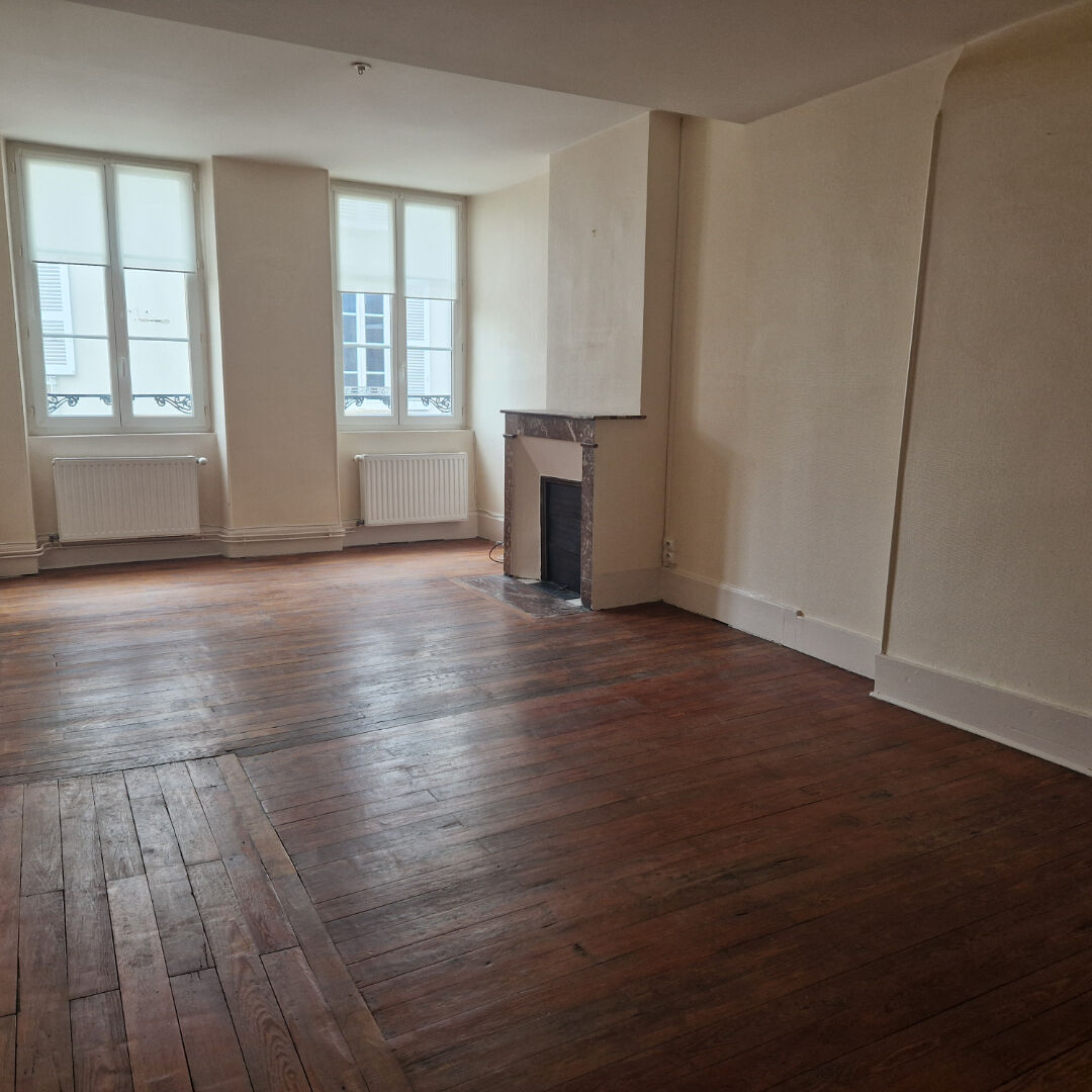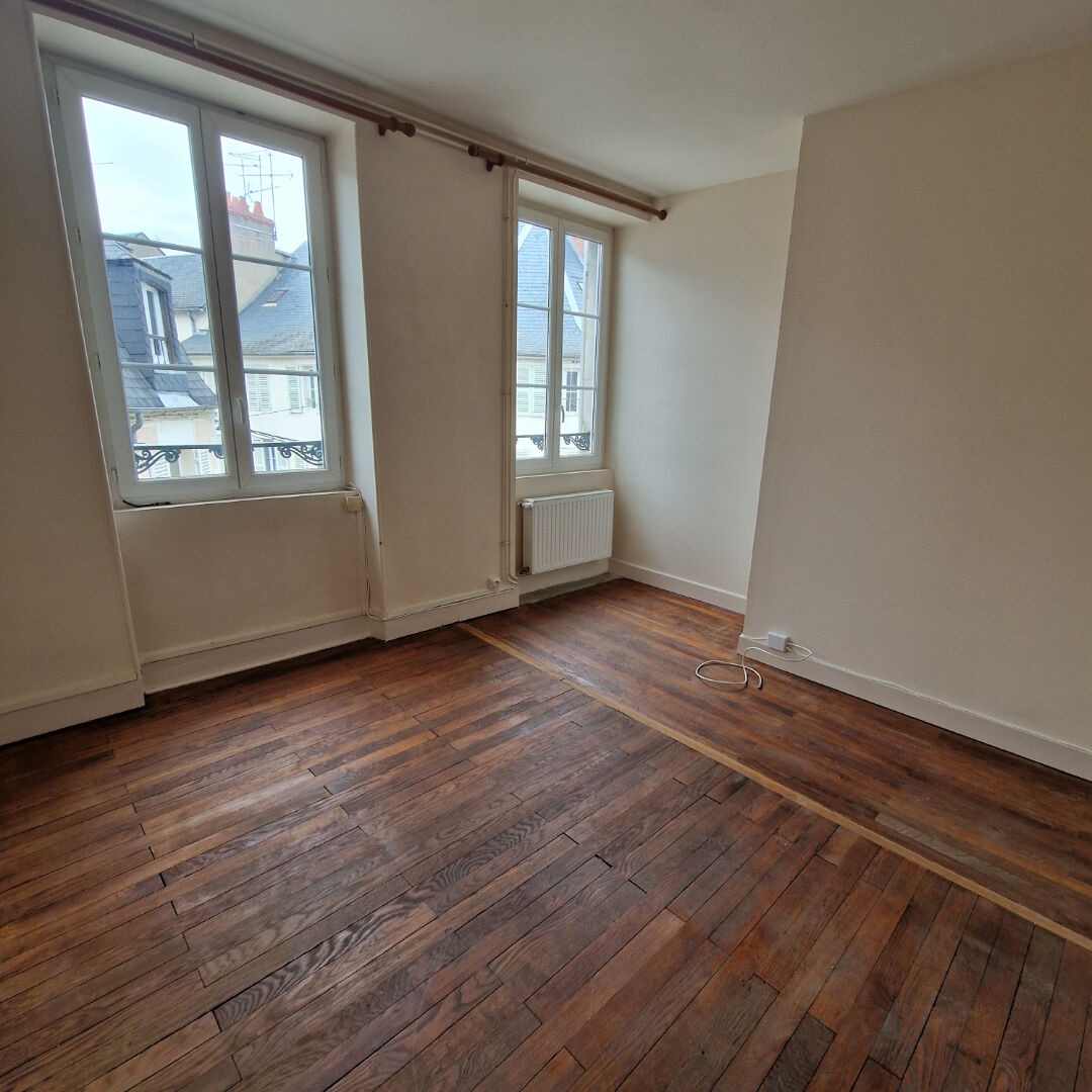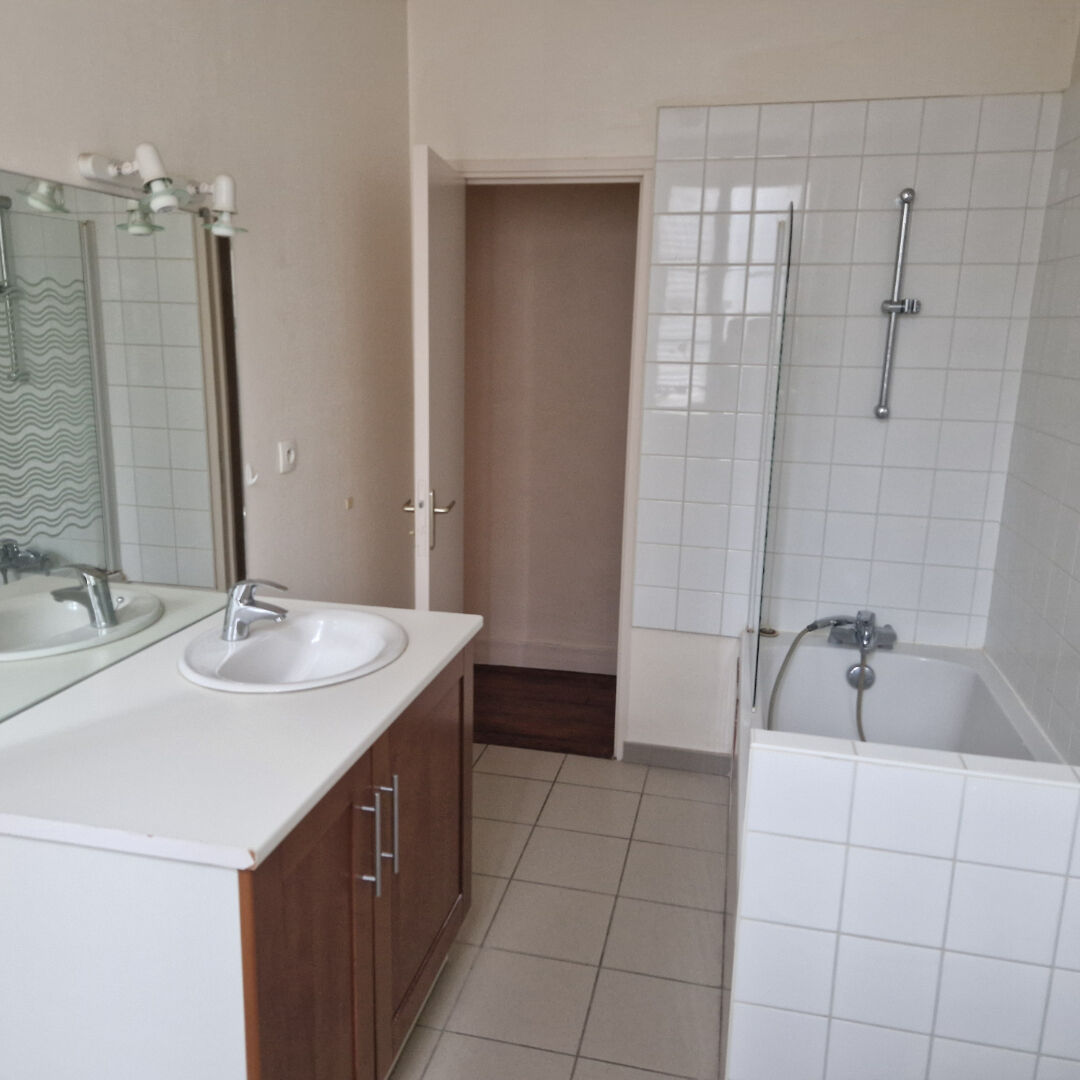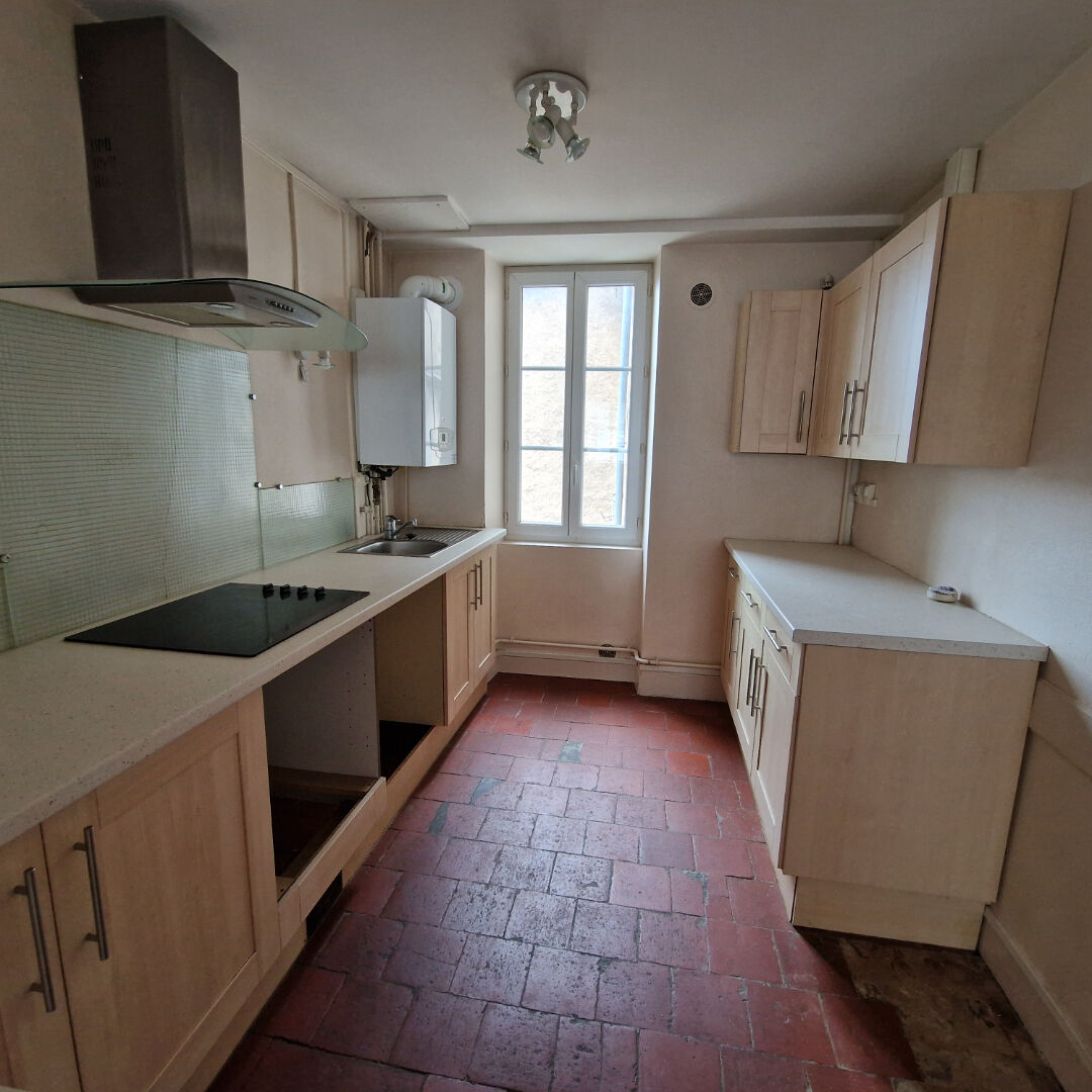 A proximité de la gare, F3 comprenant séjour avec cuisine ouverte aménagée et équipée (plaques de cuisson et hotte aspirante), 2 chambres, salle de bains avec wc.