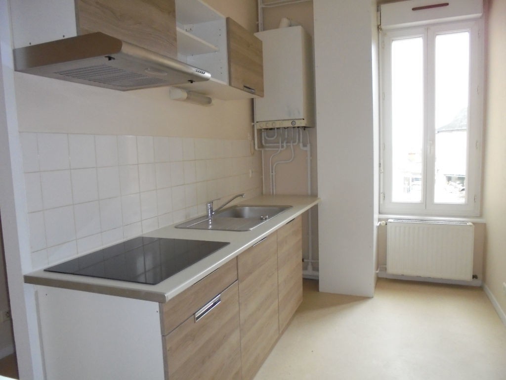 Appartement 3 pièces au 1er étage d’un petit immeuble, comprenant séjour avec cuisine ouverte aménagée et équipée, 2 chambres, salle de bains, wc. Chauffage individuel gaz.