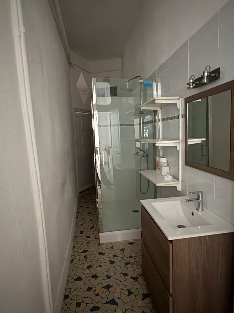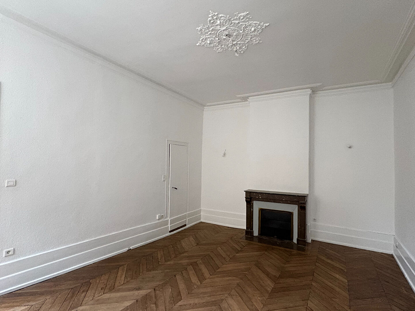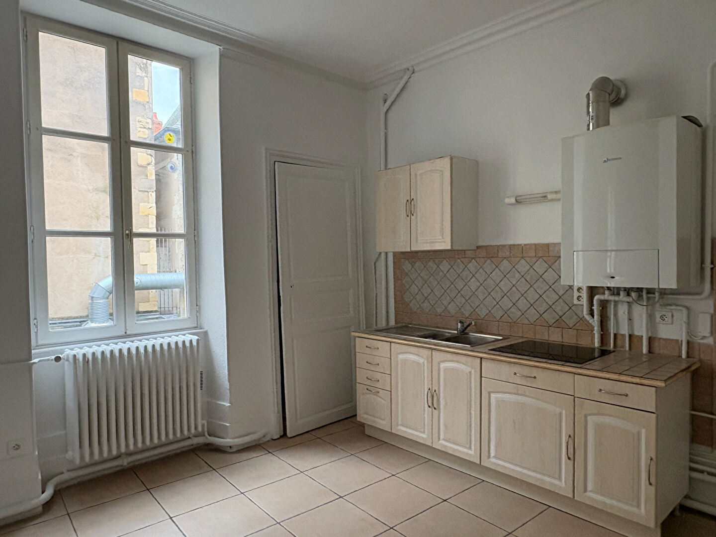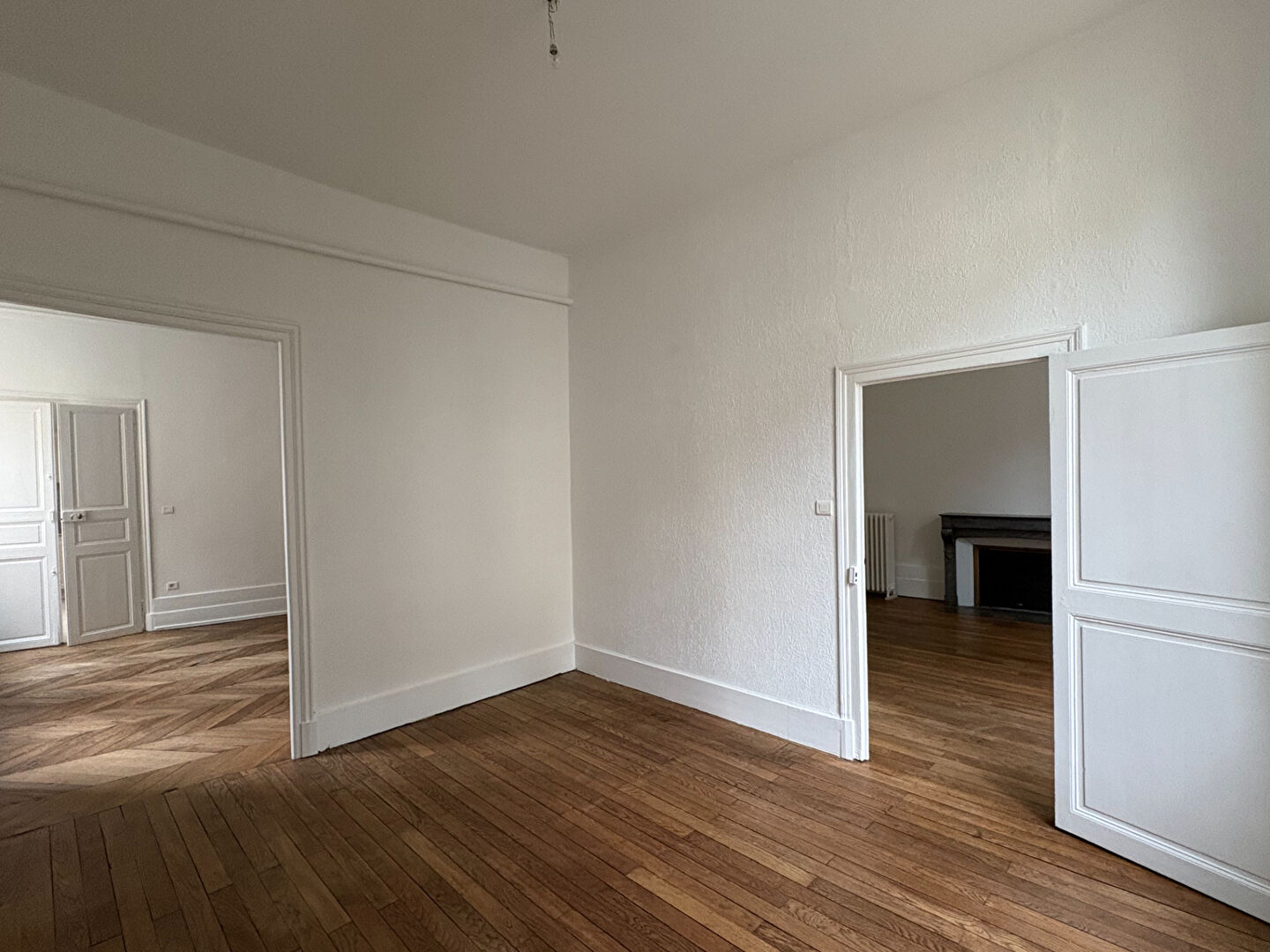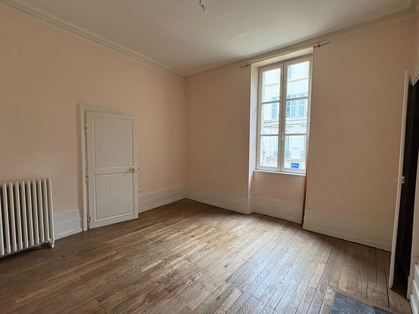 Spacieux appartement de 104m² au 1er étage d’un immeuble ancien en plein centre-ville comprenant entrée avec placard, cuisine aménagée, salon, salle à manger, deux chambres, salle d’eau et wc.
