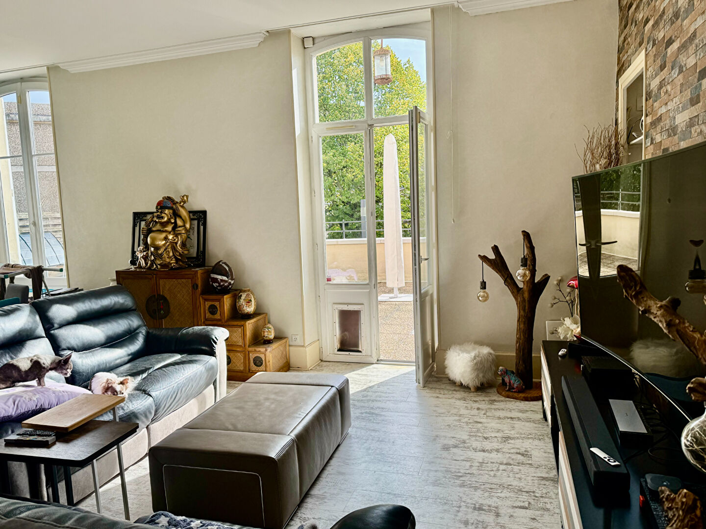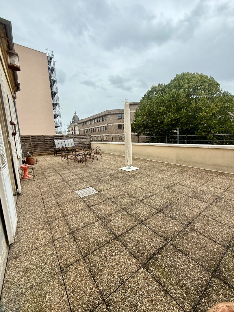 Au plein coeur du centre ville de Nevers, appartement T4 avec grande terrasse privative au 1er étage d’une petite copropriété, 91 m² hab composé d’une entrée, grand salon séjour, cuisine équipée, salle de bains, wc, deux chambres, ch c gaz ind, charges 125 euros/mois, fenêtres PVC double vitrage, cave, rare, honoraires à charge vendeur