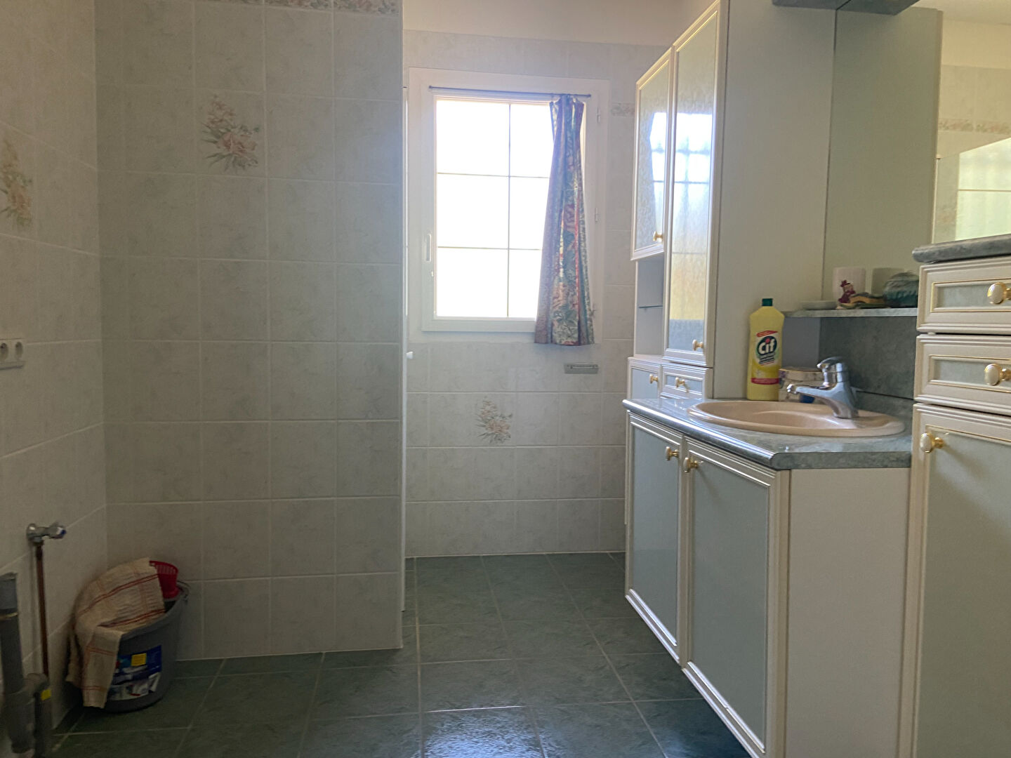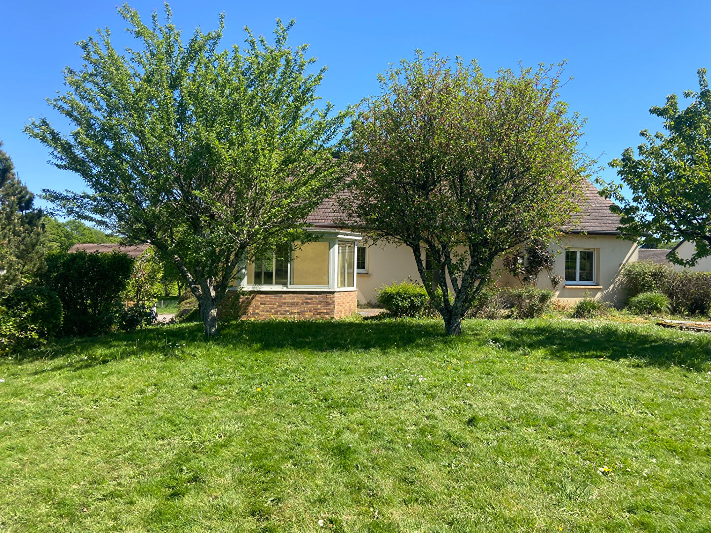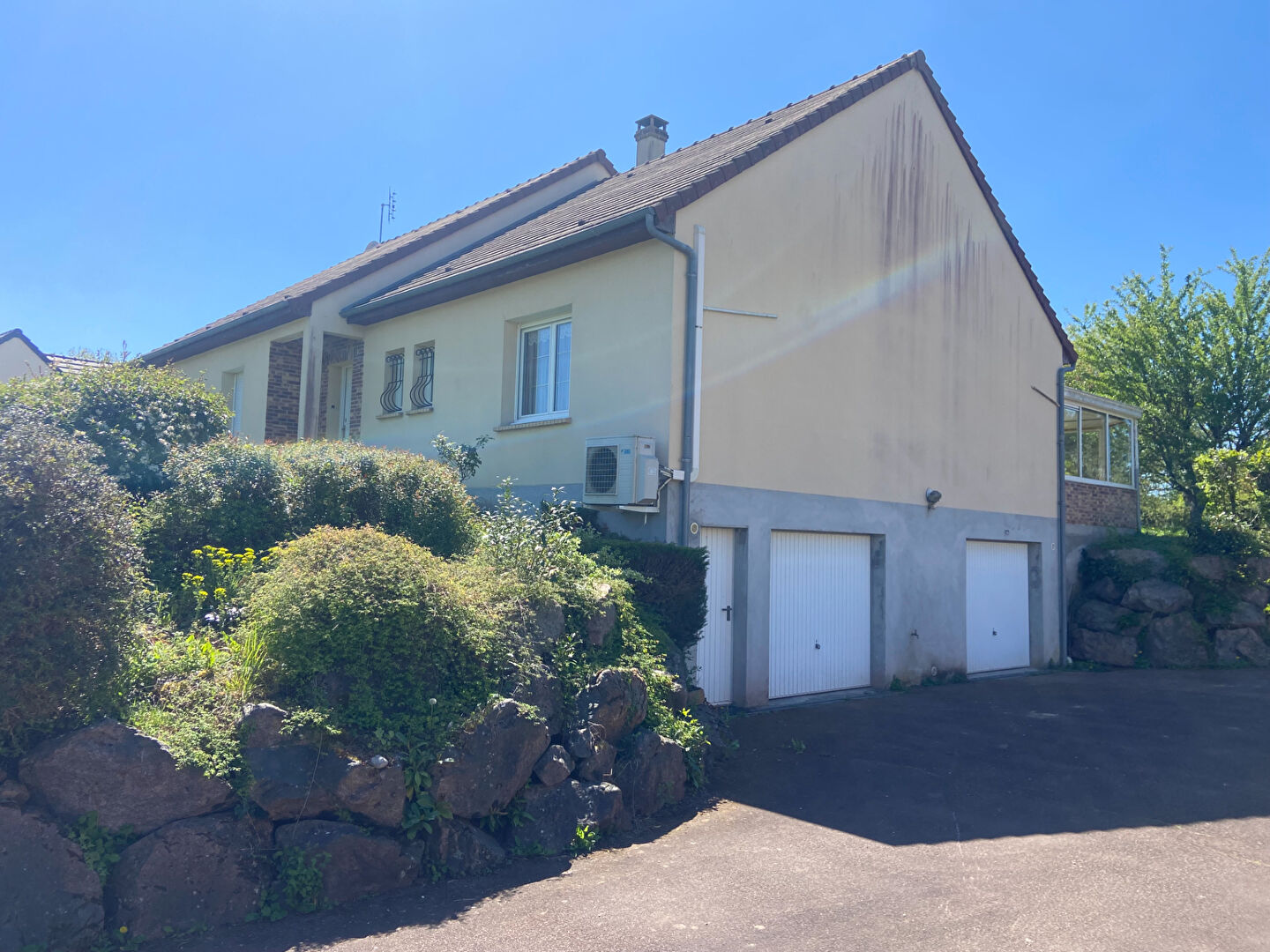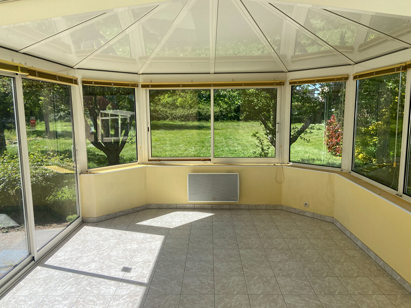 GUERIGNY, exclusivité GBImmobilier, proche de toutes les commodités, agréable pavillon édifié en 2001 de plain pied, 172 m² hab composé d’une belle entrée avec penderie, un bureau, salon séjour avec poêle à bois prolongé par une véranda avec accès sur le jardin, cuisine équipée et arrière cuisine, trois chambres et une salle d’eau, sous sol complet avec garage pour trois voitures, 4ème chambre ou salle de jeux, atelier, chauffage électrique et climatisation réversible, terrain clos et arboré de 1796 m², honoraires à charge vendeur.