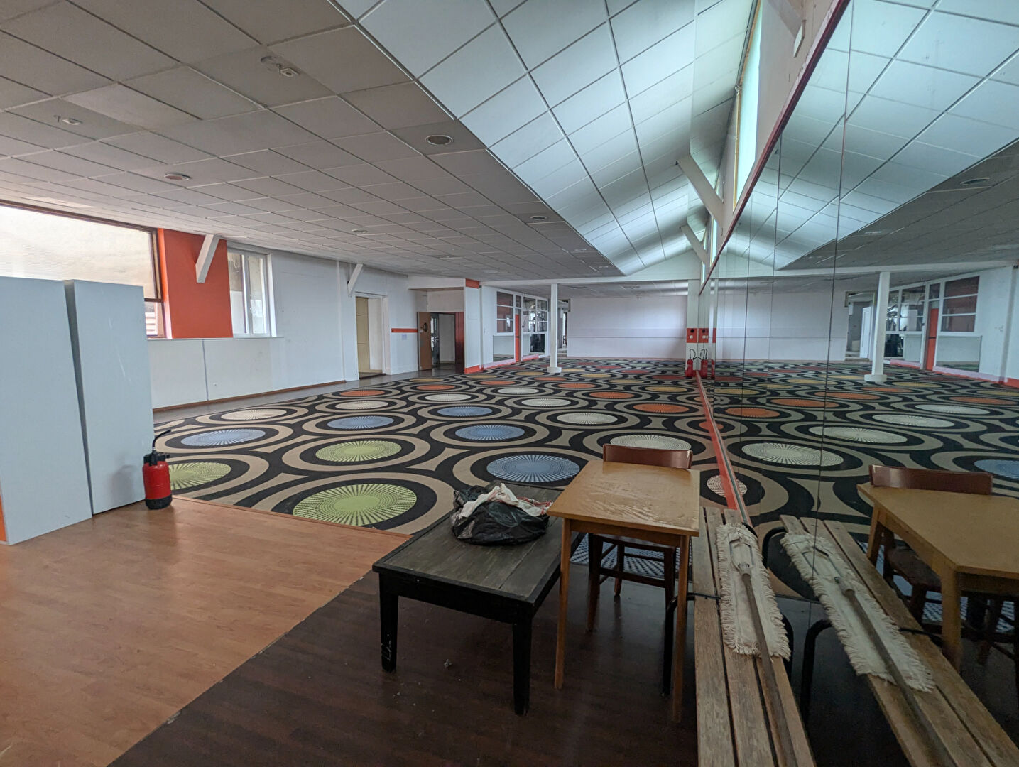 A vendre, grand local d’activité de 1129 m² anciennement exploité comme salle de sport, composé d’un hall d’accueil, de 2 grandes salles principale, vestiaires, bureaux, sanitaires, réserve et stockage. Inclus également : un appartement T2 d’environ 40 m² comprenant, une pièce de vie avec cuisine aménagée, une chambre, une douche et un WC.