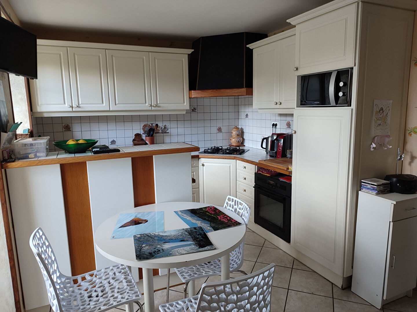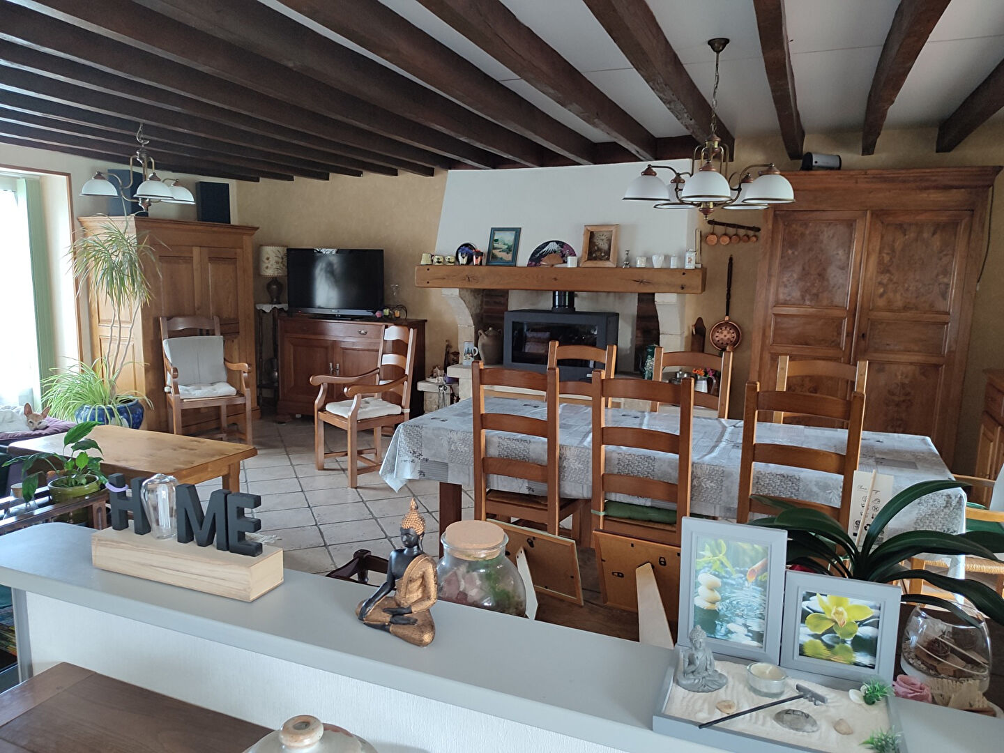 Elle se compose en rez-de-chaussée d’une entrée sur salon séjour, cuisine aménagée et équipée, salle