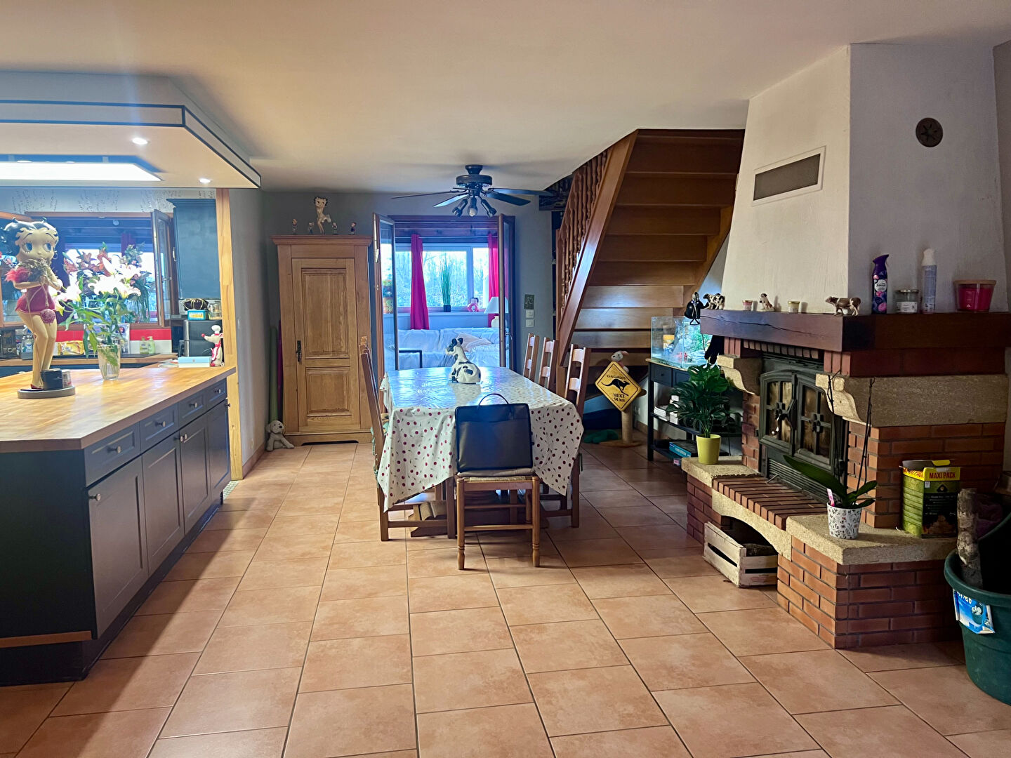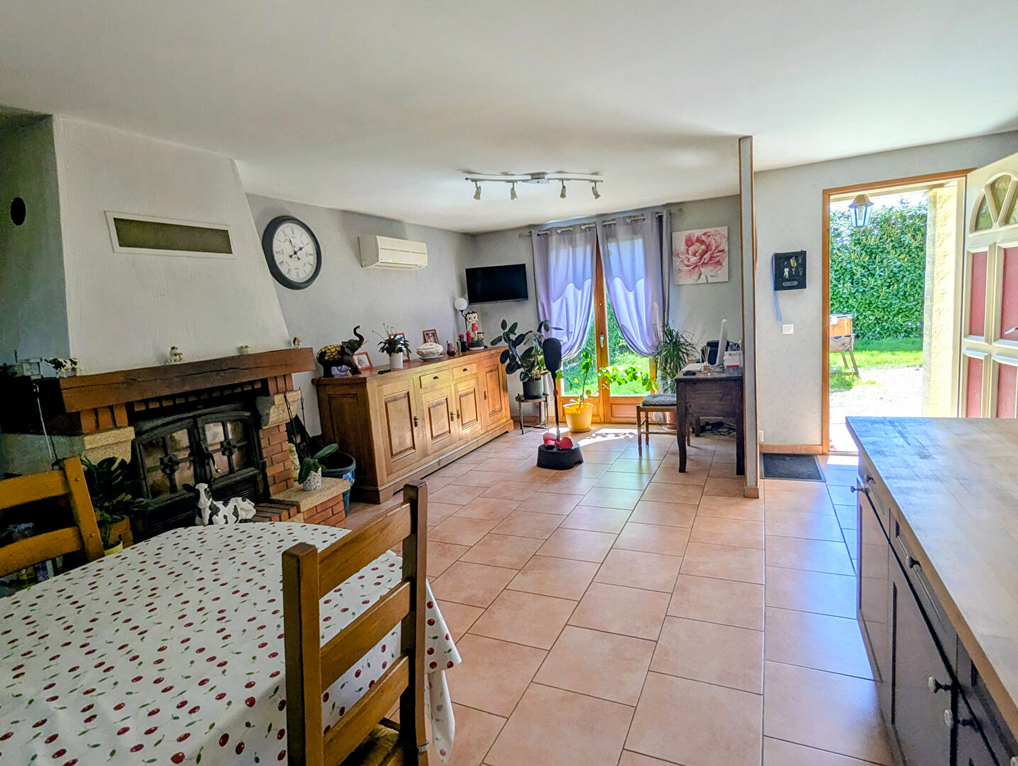 Le bien se compose au rez-de-chaussée d’une entrée sur pièce de vie avec insert bois, cuisine ouverte aménagée et équipée, véranda, deux chambres, salle d’eau, dégagement, cellier/buanderie, wc séparé,