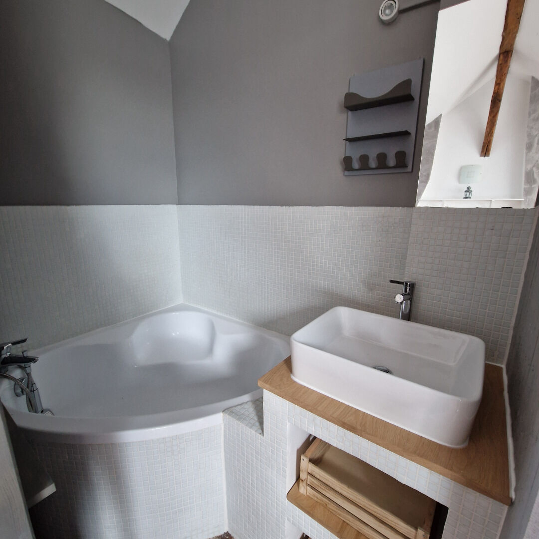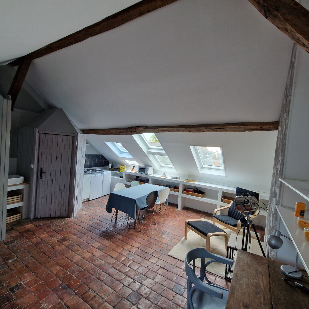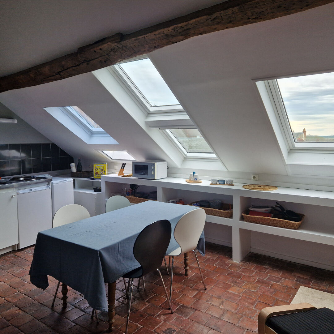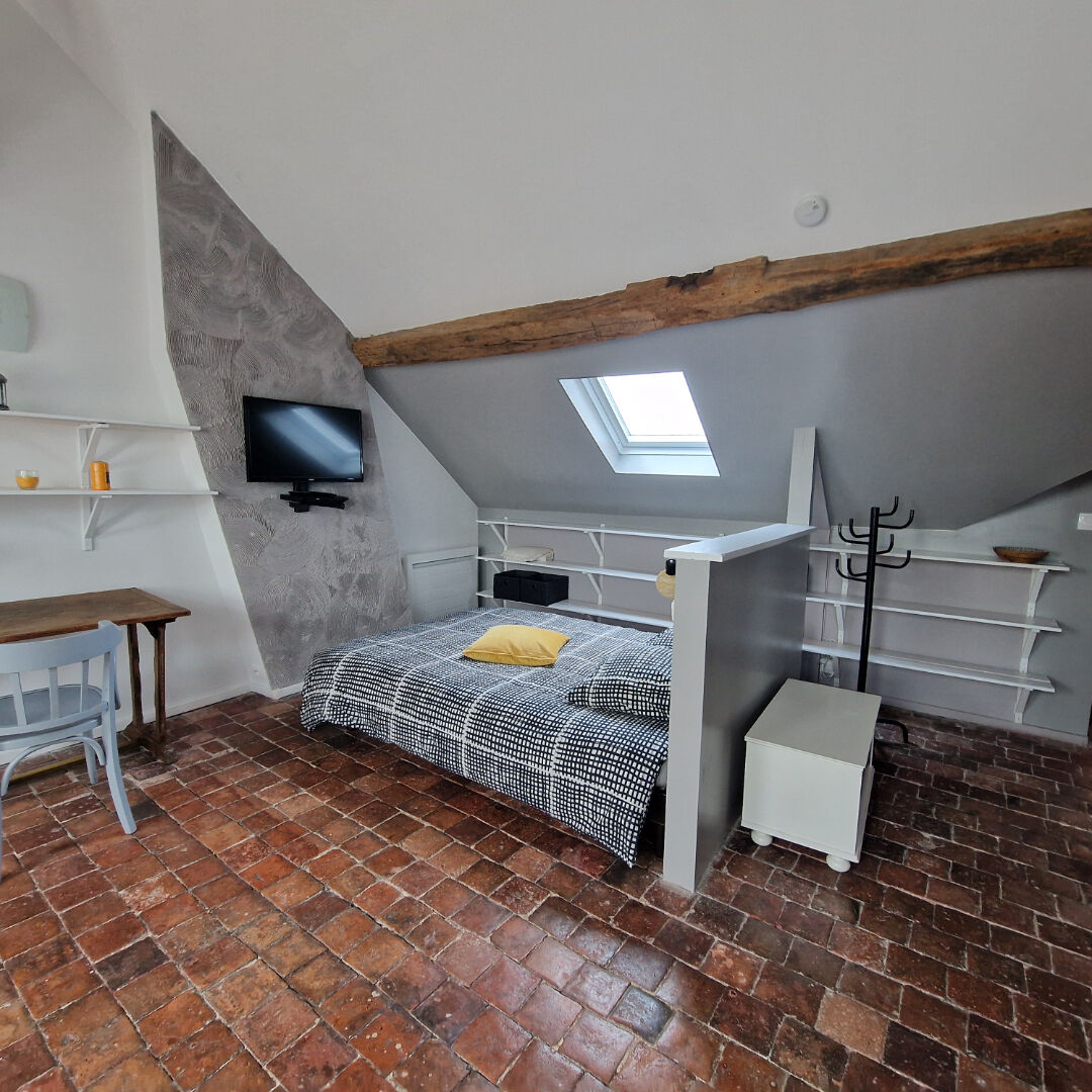 Grand studio meublé avec goût, comprenant pièce à vivre avec coin chambre, cuisine aménagée et équipée (plaques de cuisson, réfrigérateur, machine à laver, vaisselle), salle de bains, wc.