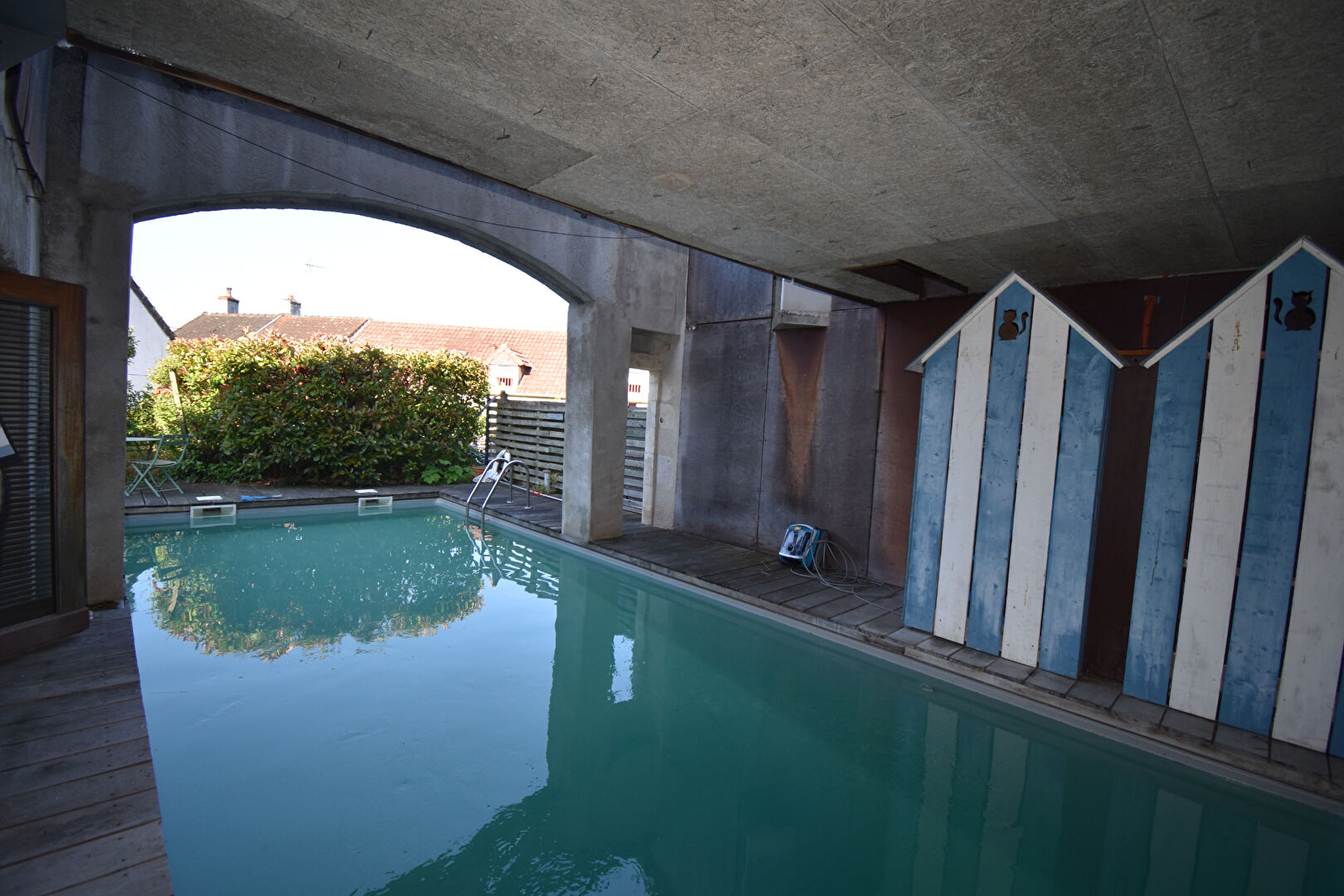 Varennes Vauzelles (58) Venez vite visiter cette charmante maison ancienne de 160 m2 et son annexe de 60 m2. Cette fermette a été rénovée par un Architecte de talent, elle allie le charme des vieilles pierres, des tomettes et du bois. La piscine nichée au coeur de l’ancienne grange, sépare astucieusement la maison principale de la maison d’invités . Vous entrez dans la pièce à vivre de 62 m2 composée d’une cuisine /salle à manger de 35 m2 et son four à pain, arrière cuisine, petite cave, bureau, la salle à manger est ouverte sur le salon très lumineux de 27 m2 et sa cheminée design, baie vitrée pivotante avec vue sur la piscine. Bel escalier moderne menant à l’étage , une passerelle en verre et bois dessert une suite parentale avec salle d’eau, un bureau, une 2ème chambre, WC, salle d’eau, une 3ème chambre avec dressing et salle de bains. La maison d’invités de 60 m2 avec son entrée indépendante est composée au Rdc : d’une cuisine ouverte sur la salle à manger/salon, WC. A l’étage : le palier dessert 2 chambres , salle de bains. Jolie terrasse végétalisée . Un atelier et un garage complètent ce bien ainsi que 2 stationnements extérieurs . Le chauffage est assuré par une chaudière à pelets pour la maison principale et chaudière gaz pour la maison d’invités. Tout à l’égout. Honoraires à charge vendeur.